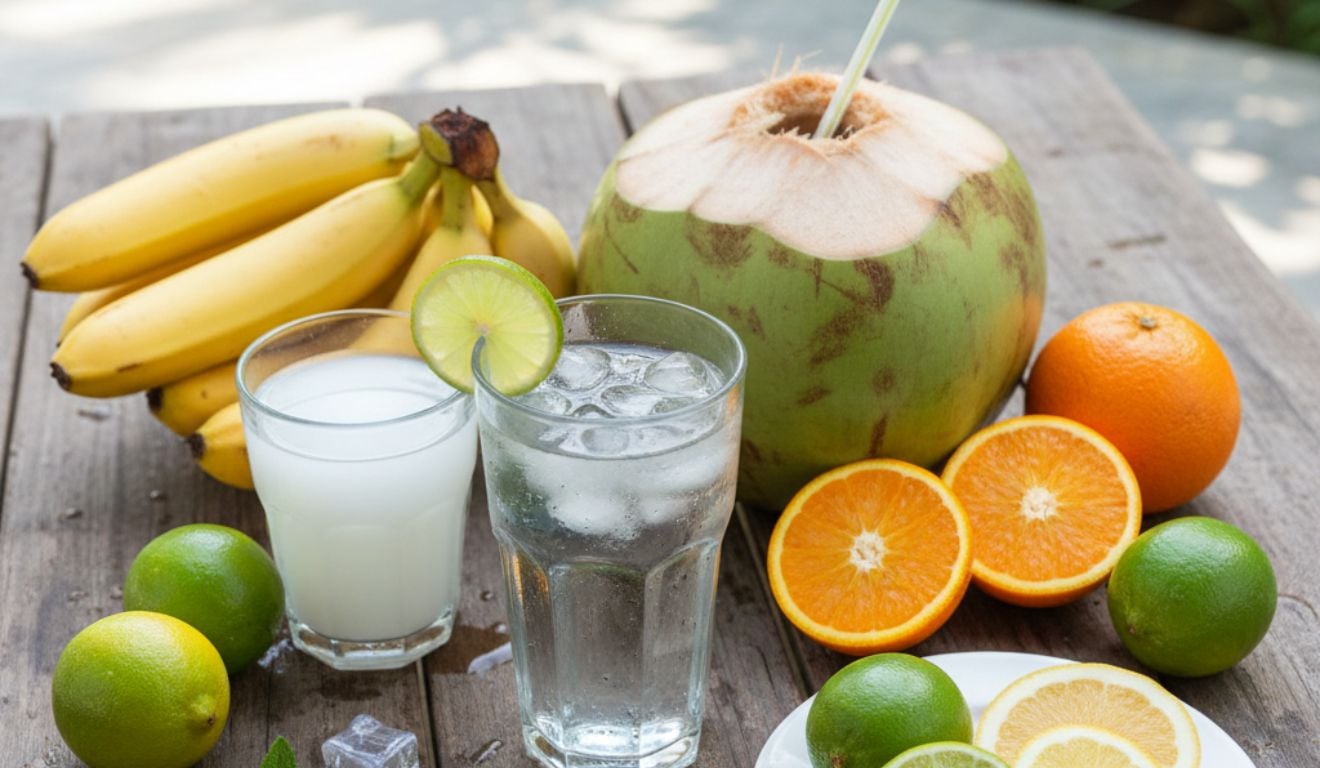 - Água de coco: além de auxiliar na hidratação, contribui para a reposição de minerais como sódio e potássio. Os níveis de potássio tendem a ser reduzidos após o consumo de álcool.