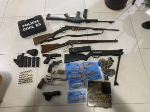 As armas e munições estavam espalhadas pela residência e não foram encontradas armazenadas de forma segura. Foi constatado ainda que duas armas tinham registro no Sistema Nacional de Armas (SINARM), mas com endereço divergente do local da apreensão. A equipe também identificou que um dos revólveres apreendidos, calibre .38, pode ser compatível com a arma utilizada no crime investigado, conforme relato da vítima.
