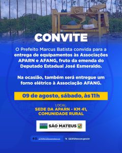 Ja as 11:00 horas estara presente em Nestor Gomes km 41, na sede da associação Aparn ( proximo a torre da vivo), juntamente com os produtores locais e demais autoridades para mais um importante passo onde sera feita entrega de novos equipamentos e melhorias que vão beneficiar a agricultura e gerar mais oportunidades para a comunidade.